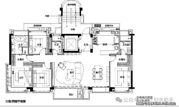 第三,约3.1米层高+边套户型4飘窗+建面约122㎡做3房,极致的尺度感。