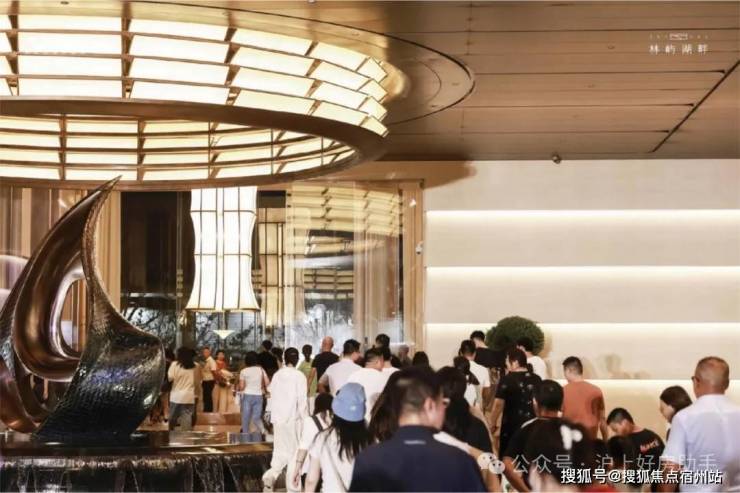总高约13.7米的双层归家大堂,整体的设计风格参考游艇的甲板,上方悬吊的是以灯塔为创作源点的吊灯,恰如整个林屿湖畔峡谷意境湖区会客厅,也是远香湖畔最璀璨的美学灯塔。