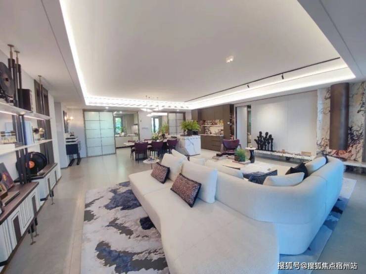 在客厅另一侧,连接客厅和厨房的岛台,LDKG一体化,进一步放大整个空间社交属性。营造N+种居家与聚会场景,让横厅的社交属性得到充分放大。