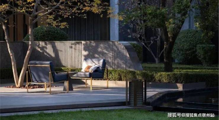 ● 东方意境融于品质用材:石材迎宾、高品质植被、格栅意境