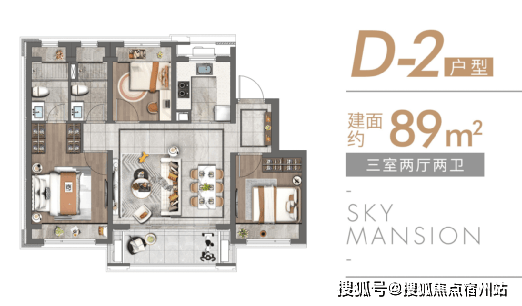 项目户型设计尤为惊艳,建面约89㎡3室2厅2卫,更是 在市场上脱颖而出。