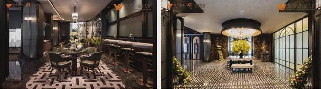 同时,酒店式入户大堂溯源海派经典,融入古铜色金属格栅、海派拼花(首层和地下大堂)、海派复古压花玻璃等海派表达,让人文感满满。