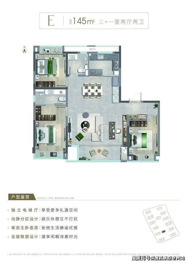 盛青云锦售楼处预约电话:400-8824-198建面约166㎡4房2厅3卫,做到了3+1开间朝南+双套房设计+卫生间干湿分离,是“一步到位”的进阶改善4房!