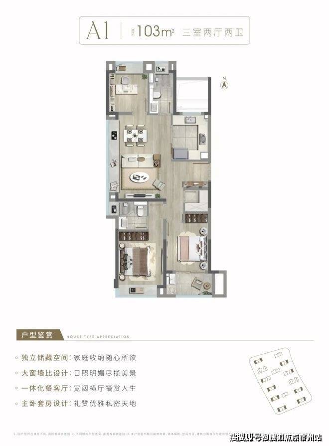 盛青云锦售楼处预约电话:400-8824-198建面约103㎡3房2厅2卫,边套户型,做到了三个面采光+双开间朝南+主卧套房设计+南北通透,室内通透明亮。