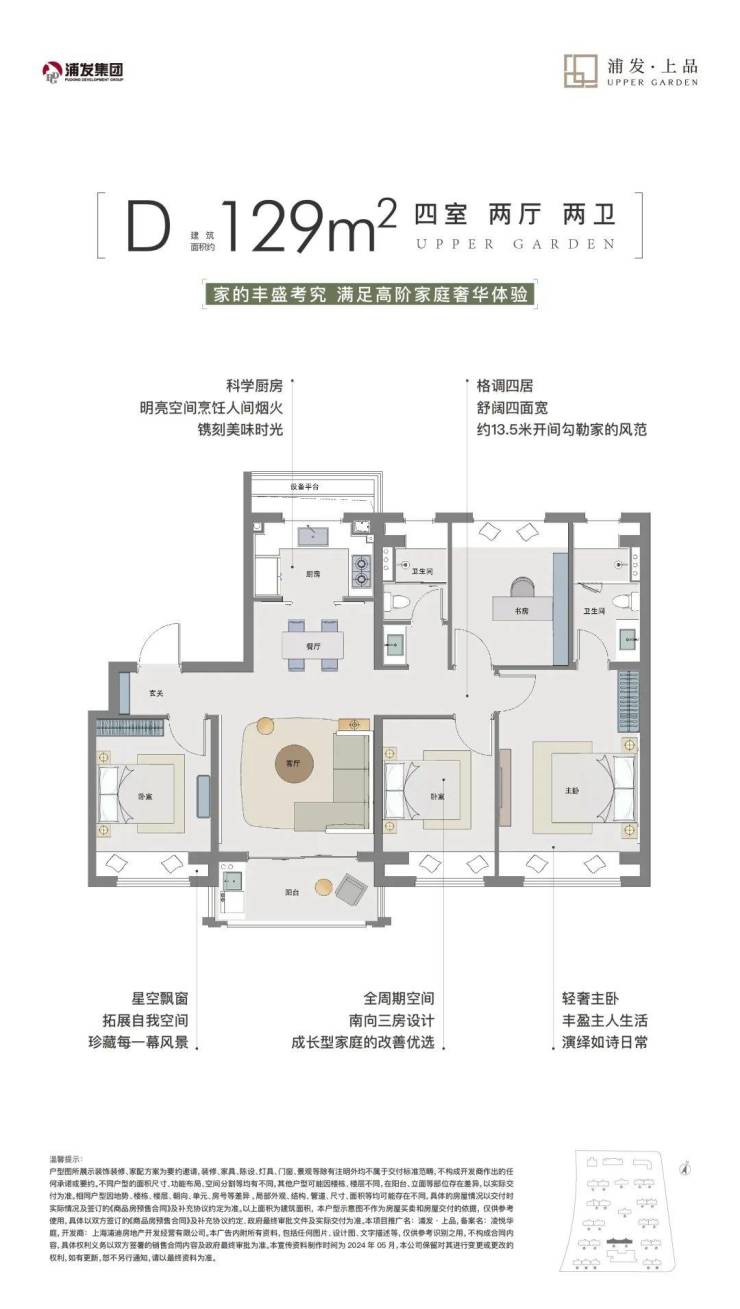 建面约129㎡4房,套数不多。