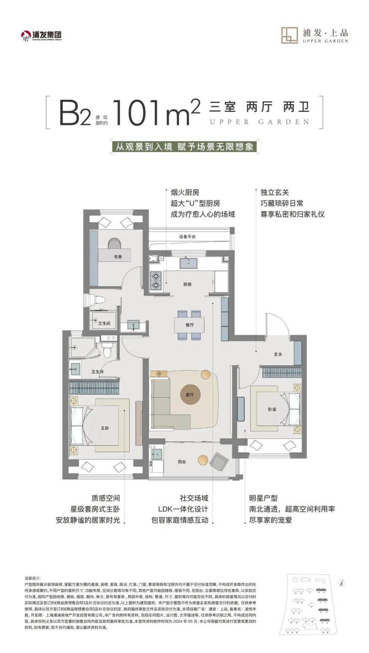 浦发上品目前在售建面约92-101-129㎡3-4房,4种全功能户型。
