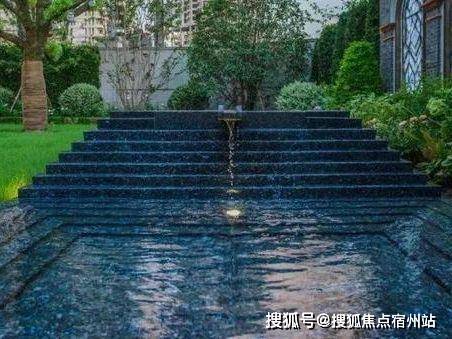中央水轴 :叠水涌泉 + 镜面水池,贯穿社区,移步异景