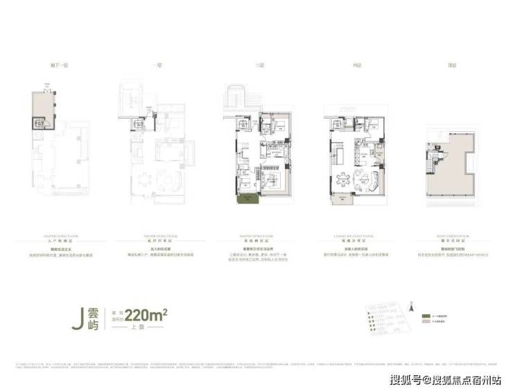 上叠主空间分布于3-4层 ,三卧室布局功能清晰,其中主卧更拥有270°全景落地窗 (北向次卧为270°全景飘窗) 视野,采光、视野极佳。