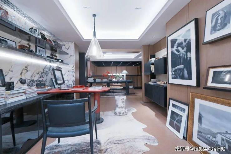 如果说吊顶是建筑的皮肤,那么墙壁便是灵魂的铠甲。卧室区域外,除了s空间,墙壁均为木饰面+岩板,并且 使用了天然昂贵的影木,橡木 。