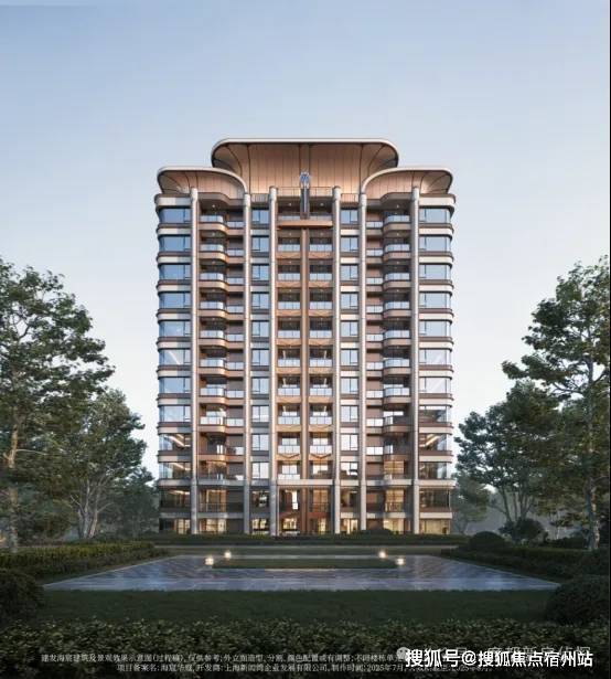 建发「宸系」中式作品,铝板与玻璃幕墙外立面,配园林景观。约1150套房源高低配,限高40米 ,含小高层、洋房、叠墅产品,满足刚需与改善需求。