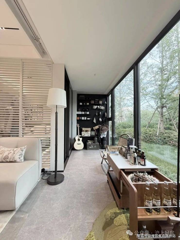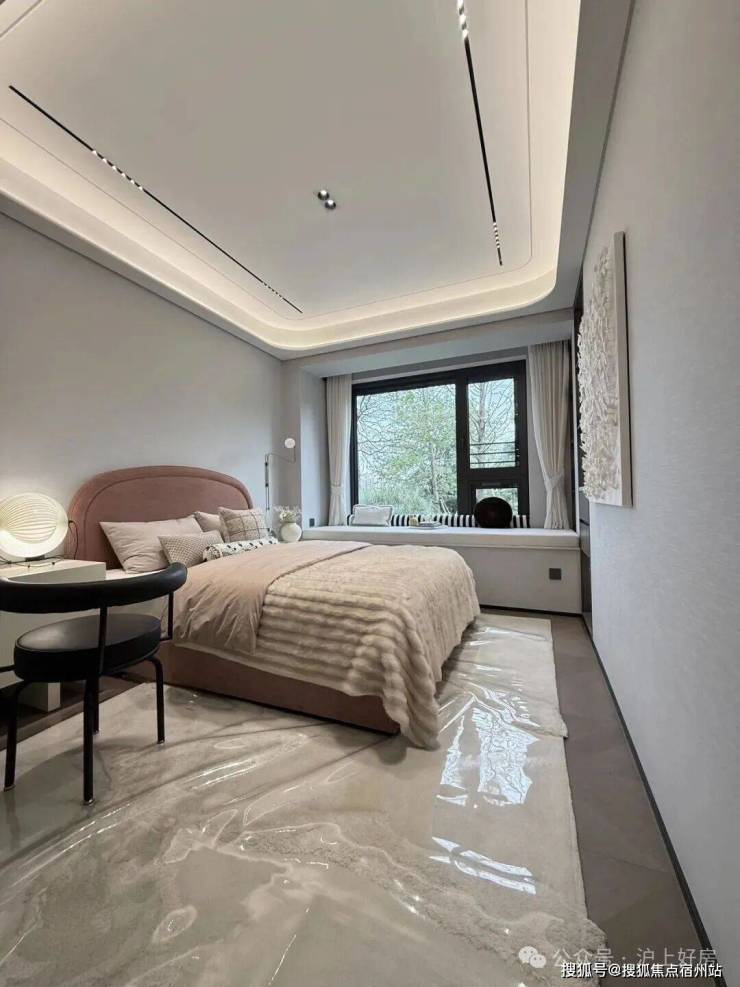 其中主卧的270°转角飘窗就有约5.7m²,通过与外立面的结合,直接做了梳妆台和储物柜,拓展了飘窗的实用性。