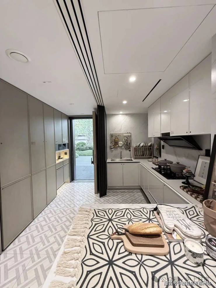 比如,厨房配了珍珠白吊柜、三组抽屉式拉篮合理搭配,调料架收纳、大容量踢脚抽、清洁用品收纳区,米面粮油、碗碟刀叉都可完美隐身。