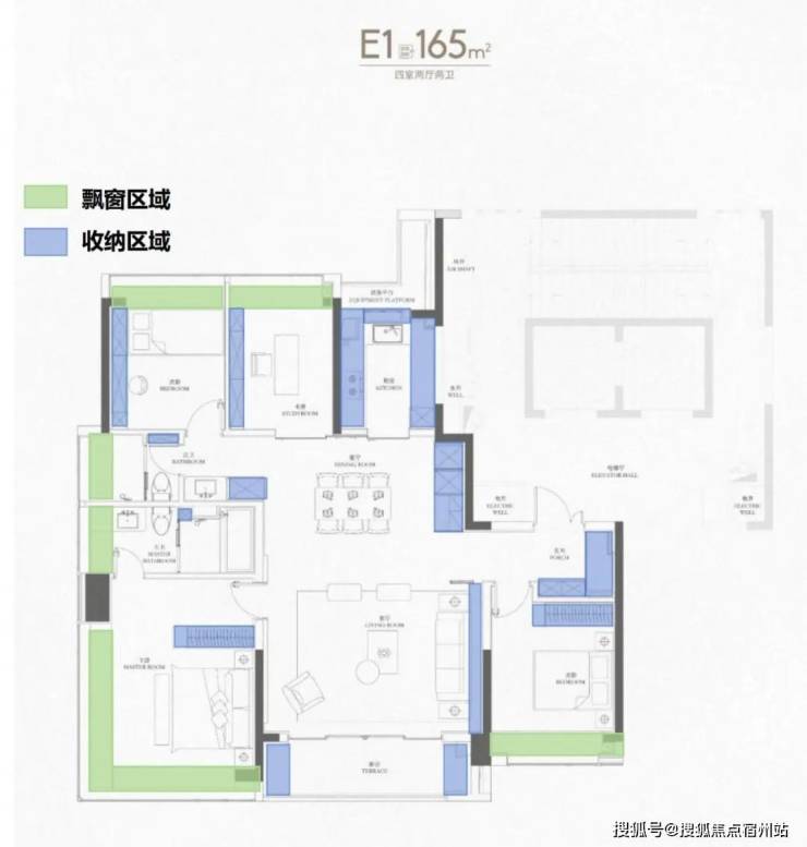 下图蓝色为收纳区域,绿色部分即飘窗区域: