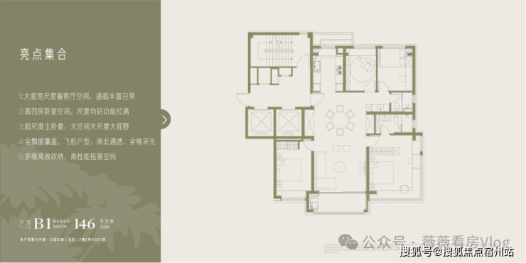 146㎡四房精准锚定多孩家庭、三代同堂的核心居住需求。户型采用三开间朝南的科学格局规划,最大化延伸南向采光面,搭配短进深大面宽的黄金空间比设计,让阳光与清风贯穿室内各个功能区,采光与通透感完全媲美更大面积段的户型产品。此外, 干湿分离的卫生间设计,高峰期间可多人同时使用,互不打扰 ,进一步提升了日常起居的便利与舒适。 两个北侧卧之间为非承重墙,既具备四房的功能性,也可灵活改造为大三房 ,满足家庭不同阶段的成长与变化需求,真正实现兼具实用性与自由度的理想居住体验。