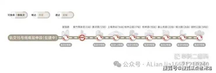 5号线、15号线南延伸段(在建中)、市域嘉闵线南延伸段﹙规划中﹚、市域奉贤线(规划中)及南枫线(在建中)