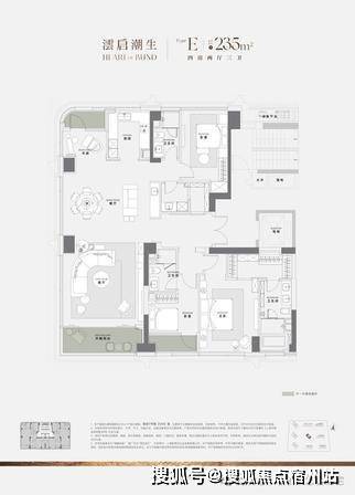 3. 235㎡ 四房两厅三卫|央景楼王 顶配改善 社区心脏位置的楼王产品,直面 3500㎡下沉庭院,零距离对接会所配套。