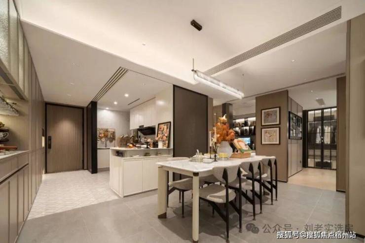 此外,室内还大量运用 雅士白大理石 、 大花白岩板 、 皇家孔雀岩板 、 水纹夹丝玻璃 、 仿洞石岩板 、 卡拉卡塔白岩板 、 灰色皮革 等定制材质,以 华润置地独有的“五奢体系” , 彰显着对高品质生活的极致追求