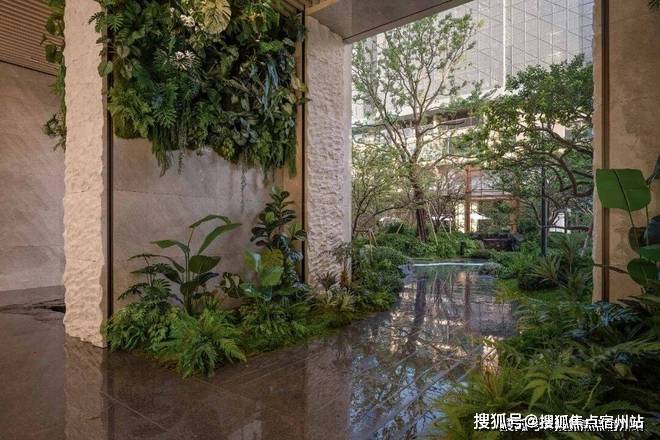 藤蔓沿墙垂落,水流自然流入,花草在架空层间摇曳生姿,使这一开放场域成为生机盎然的灵动空间。