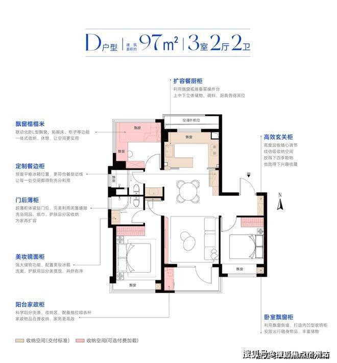 通过系统化的收纳设计,每个空间的储物能力都得到了显著提升。以60L容量的24寸行李箱为参照:97m²C户型整体交付柜体总容量约12m³,相当于足足200个行李箱。这种对空间的高效挖掘与利用,轻松解决了业主的储物难题。