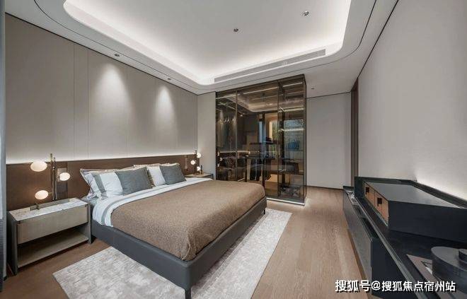 主卧套房设计是该户型的一大亮点,主卧面积约 40 平方米 ,配备独立的卫生间、衣帽间以及书房。卫生间采用干湿分离设计,双台盆、浴缸、淋浴间一应俱全,满足您不同的使用需求。衣帽间空间宽敞,可容纳大量衣物,满足您对于衣物收纳的需求。独立书房则为您提供了一个安静的工作与学习空间,让您在繁忙的生活中也能拥有一片属于自己的静谧天地。此外,主卧还带有一个飘窗,您可以在这里放置一些柔软的坐垫与靠枕,闲暇时坐在这里,沐浴着阳光,阅读一本好书,或者欣赏窗外的美景,享受片刻的宁静与舒适。