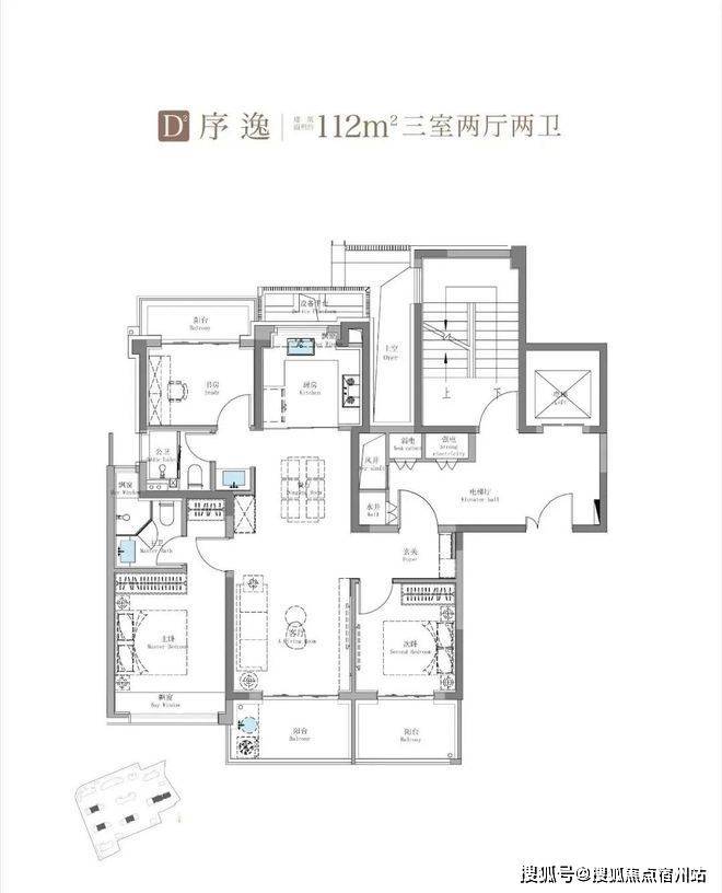 2、产品革新:建面约 115㎡「鲲鹏阁」以93% 实得率、三阳台 + 270° 环幕飘窗的设计,将传统115㎡户型的使用空间拓展至可能常规130㎡户型才有的使用空间,更通过LDKB 一体化改造实现 50㎡超级社交场,这种「反常规空间逻辑」打破了「面积即改善」的市场惯性,成为高净值客群抵御周期的硬通货;