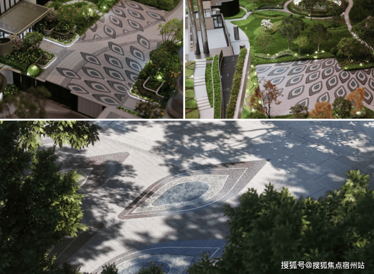 社区园林汲取中式园林精髓,以茂密森林为设计灵感,与黄浦江景遥相呼应;公共区域地面采用宝石切割技艺铺装,打磨出绿宝石般精致路径,形似孔雀开屏,高级感与艺术感兼具。