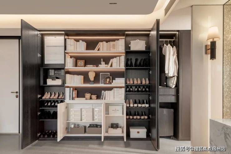 公卫还有全尺寸衣帽收纳空间以及配备洗烘套装的家政间,共同构成了一个高效、便捷的收纳体系。