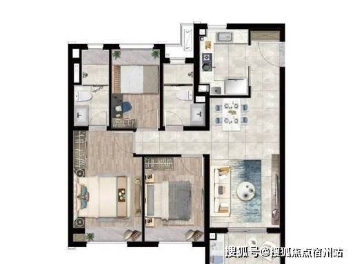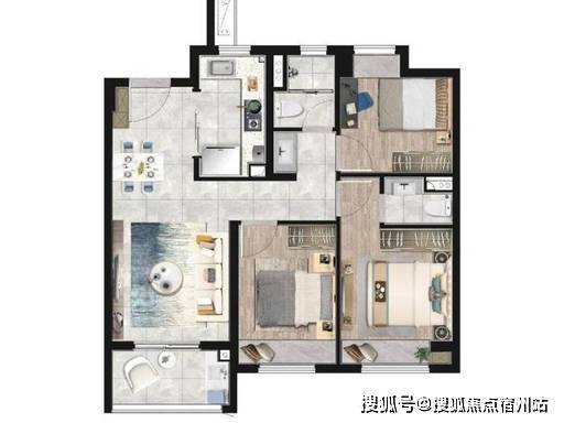 三房空间均衡 ,无狭小边角房,可满足 三口之家、二胎家庭、三代同堂 短期居住需求;