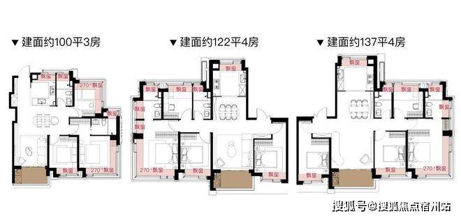 约122、137㎡户通过差异化非承重墙布局,满足不同家庭结构的需求。
