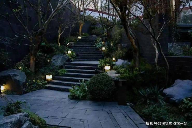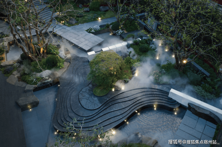 · 林涧溪谷:这片下沉秘境中,约300㎡镜面水畔点坐落其间,夜晚则有伊朗白雪荧玉石灯照亮归途,成为与知己畅谈、与家人共聚的隐奢客厅