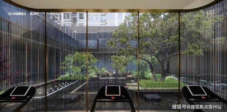除此之外,会所还拥有下沉水光庭院,与周围建筑融为一体,如自然盆景。
