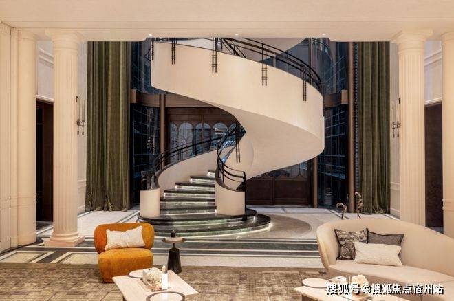 门庭延街的外立面,以精工定制弧形贝金米黄大理石为主调,镶嵌典藏级老虎玉大理石,点缀古铜色现代海派艺术感灯器,上清和玺售楼处电话:400-833-6309【官网】整体呈现出百年海派的贵雅气质。