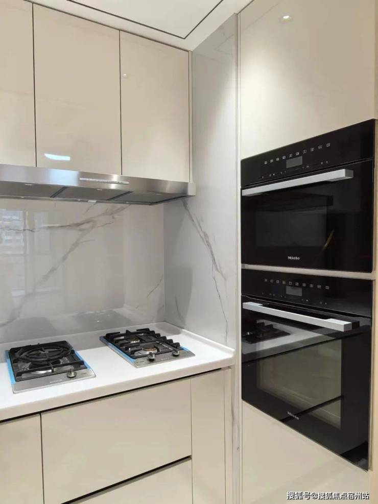 细节方面,项目采用了拉米娜的进口电视背景墙、顶级奢侈品牌卡莉斯塔的主卫龙头、ABB的智能化控制、LG的厨房台面,甚至是阳台的电动晾衣架、水槽、吊柜都是交付标准。