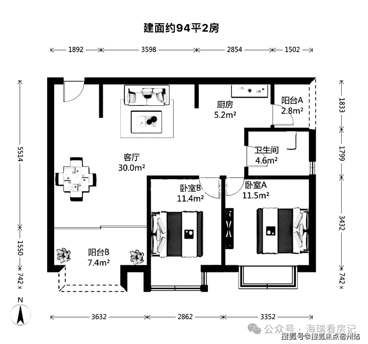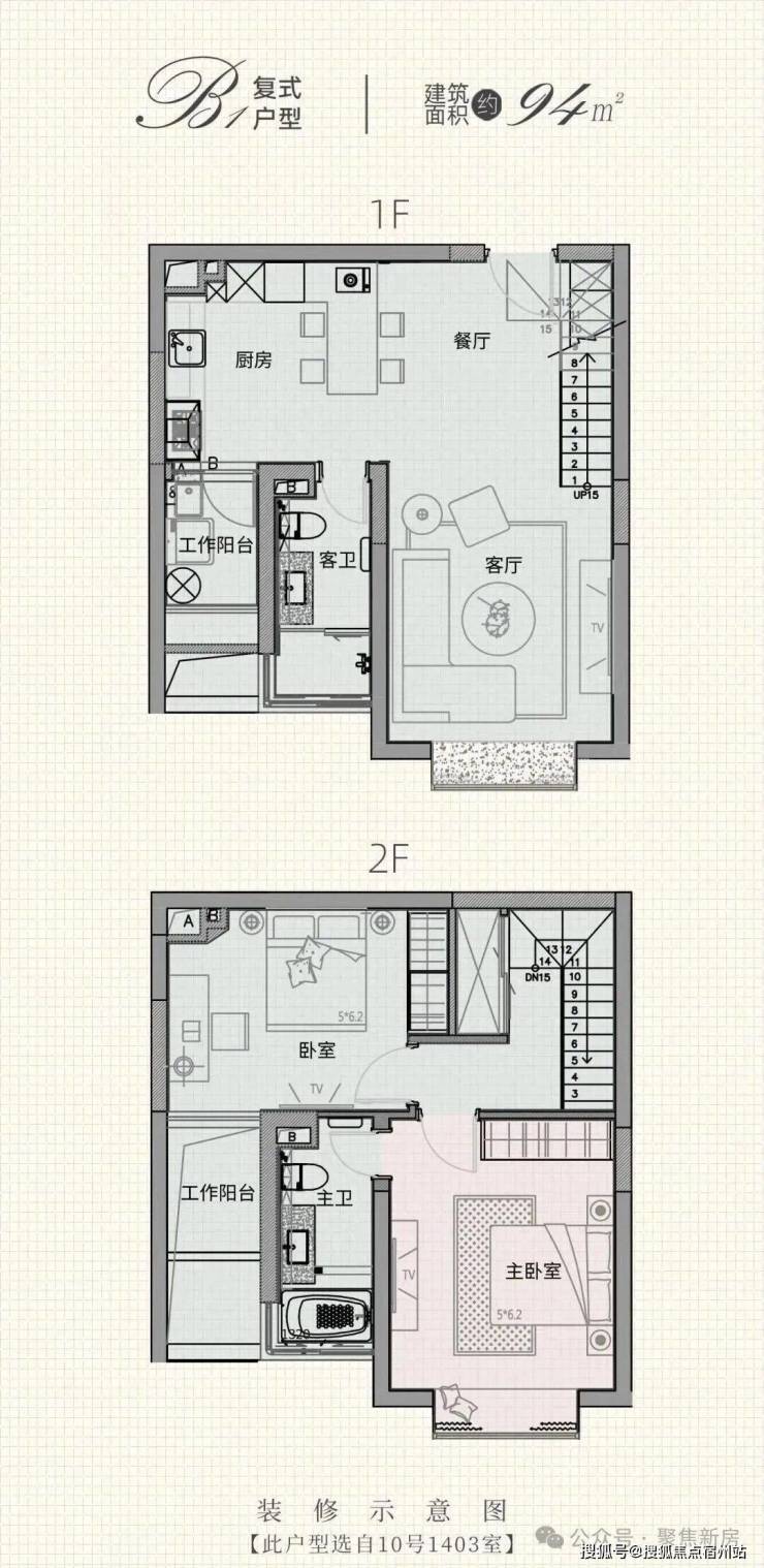 约94㎡的多功能两房采用上下分层设计 ,轻松实现整体空间的动静分离,一楼客餐厅活动区两开间朝南采光充足,尽情欢愉!