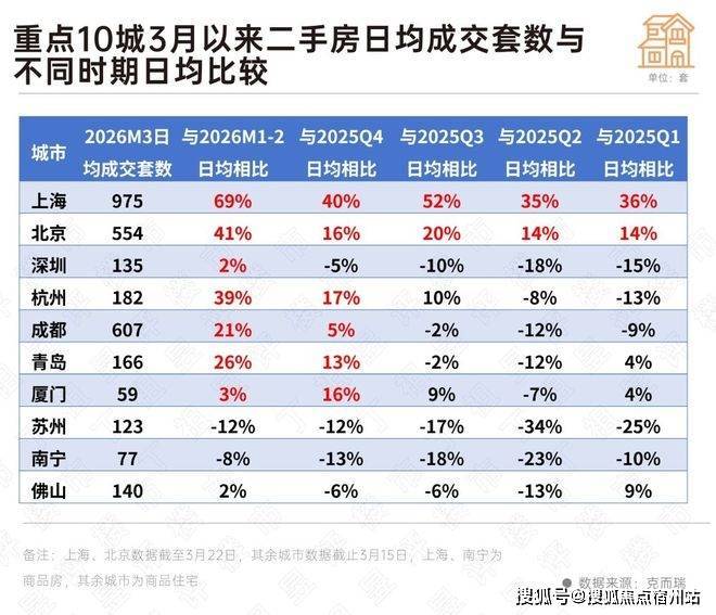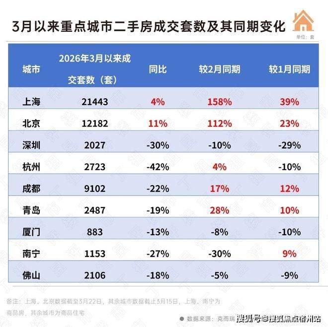 尤其是上海。3月以来的三个周末二手房单日成交均破千套,截至3月22日累计成交已破2万套,预计二手房成交套数将破3万套。