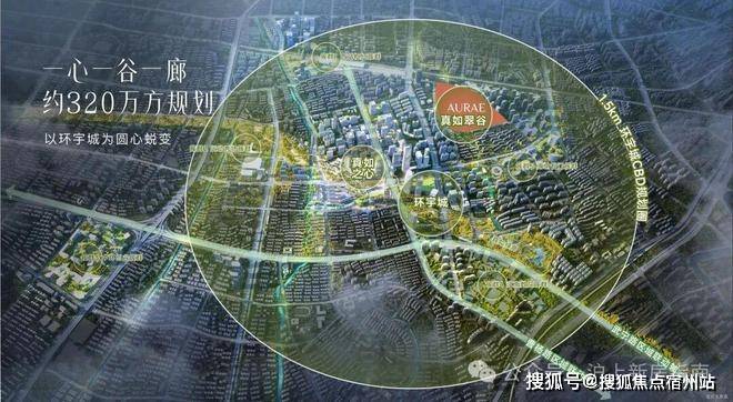 以环宇城为圆心蜕变1.5km圈,围绕“一心一谷一廊” 规划。一心-真如之心、一廊-真如绿廊、一谷-真如翠谷。