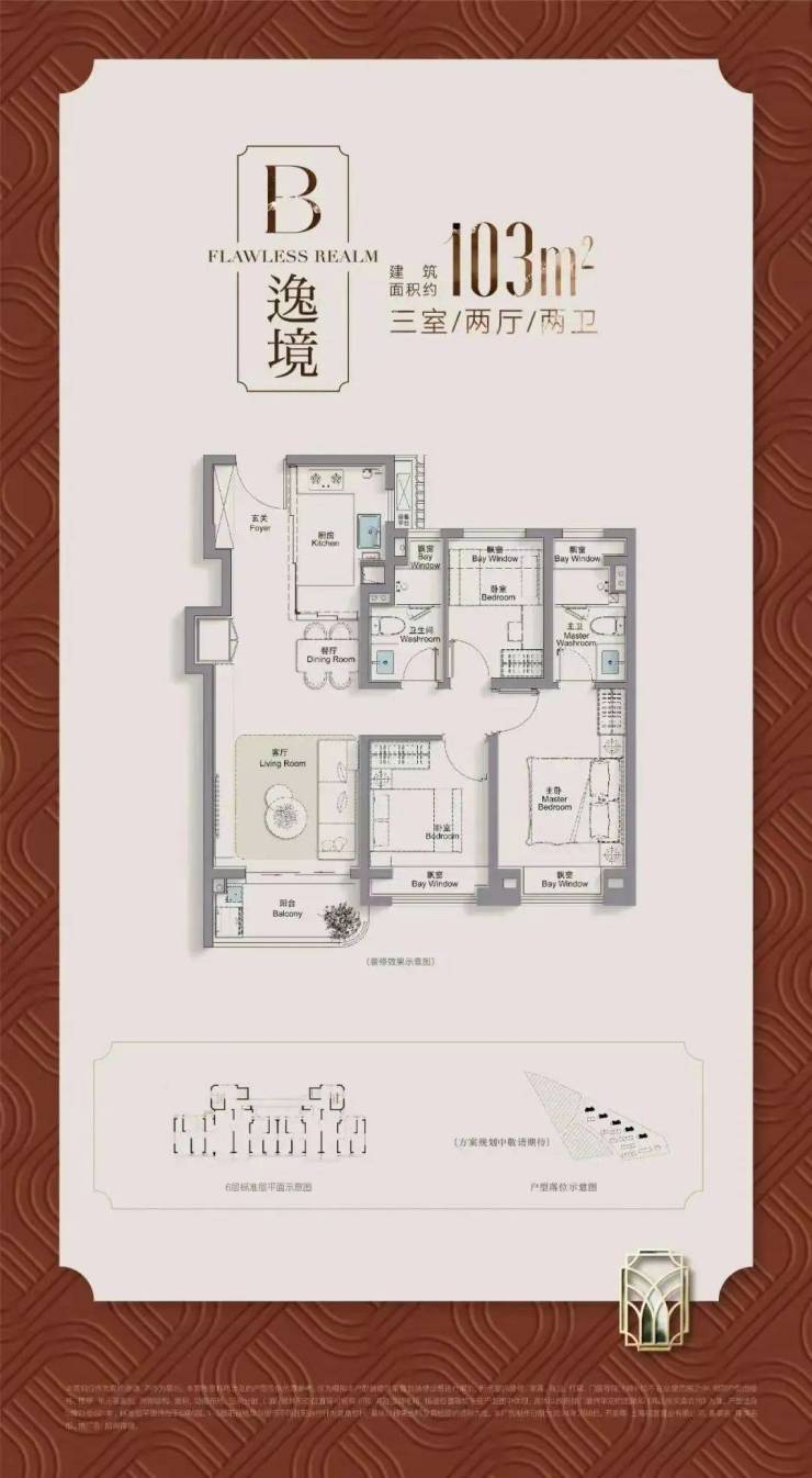 再加上南向大面宽短进深、全卧飘窗、L型转角阳台设计,哪怕小户型89㎡3房,尺度感都超棒,采光和视野更是一流。