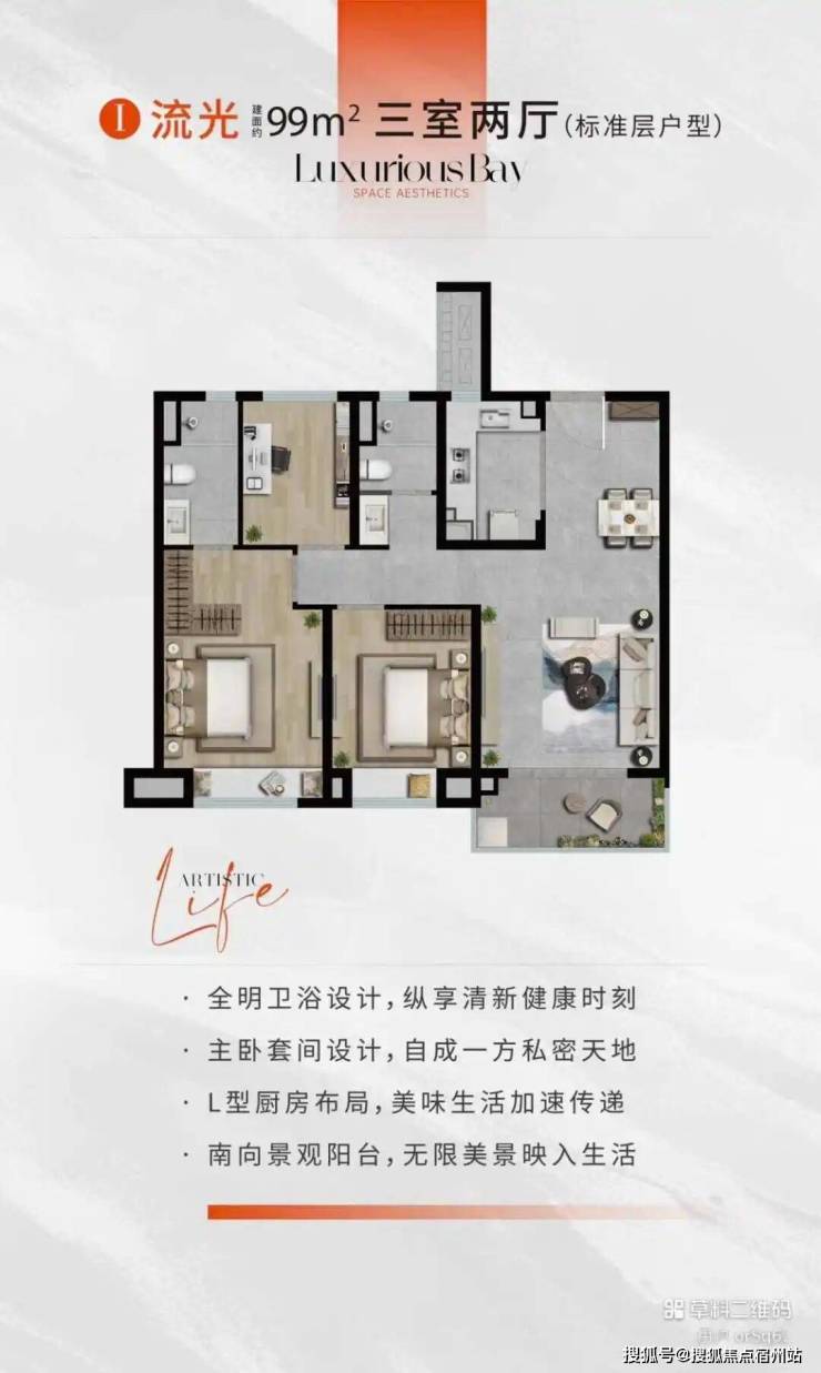 建面约99㎡3房2厅2卫