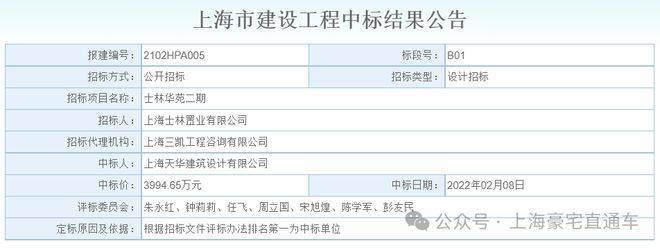 2022年2月8日,上海天华建筑设计有限公司以3994.65万元中标士林华苑二期地块设计项目!