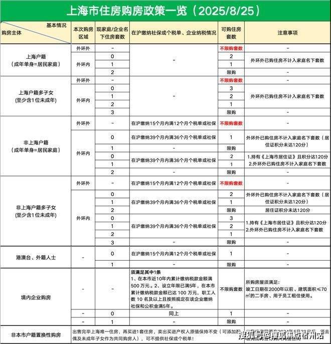 结合8月25日发布的新政,上海链家已将限购、税费、公积金贷款、商业贷款等关键政策,梳理成清晰易懂的图表,助您快速掌握最新购房要点。