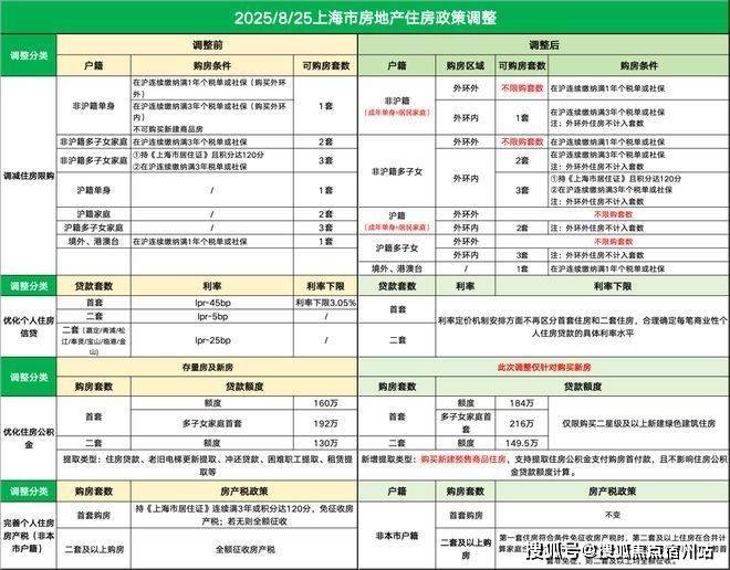 为更好满足居民刚性住房需求和多样化改善性住房需求,促进房地产市场平稳健康发展,8月25日,市住房城乡建设管理委、市房屋管理局、市财政局、市税务局、人民银行上海市分行、市公积金管理中心等六部门联合印发《关于优化调整本市房地产政策措施的通知》(以下简称《通知》),包括调减住房限购、优化住房公积金、优化个人住房信贷以及完善个人住房房产税等政策。《通知》自2025年8月26日起施行。