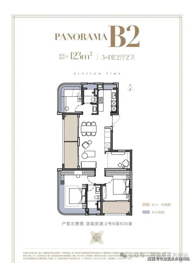 建面约123㎡(高层)三阳台和双270°转角,飘窗(实得率应该可以达到96%左右)