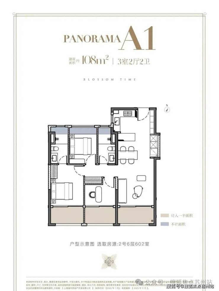 项目108户型,实际能呈现市面约120㎡的空间感;该户型均价约12.65万/㎡,折算实得率,真实建面单价在11.5万/㎡左右。