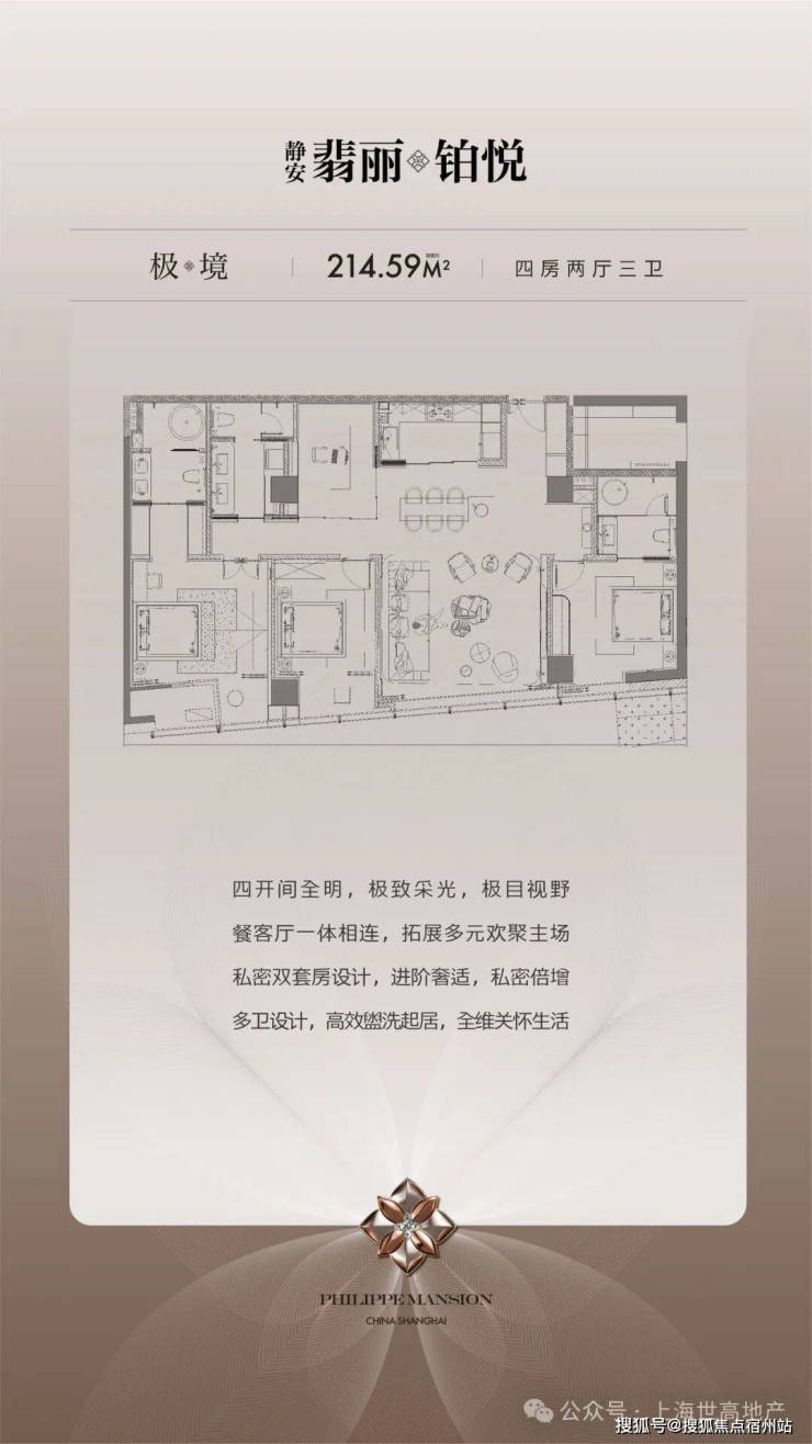 - 极境214㎡:4房双套房,四开间全明采光,餐客厅一体化拓展社交主场。