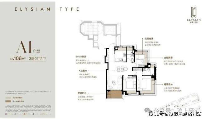 约104m²三房两厅两卫(A2户型)✅✅保利天奕售楼处电话:400 - 8824 - 258✅✅