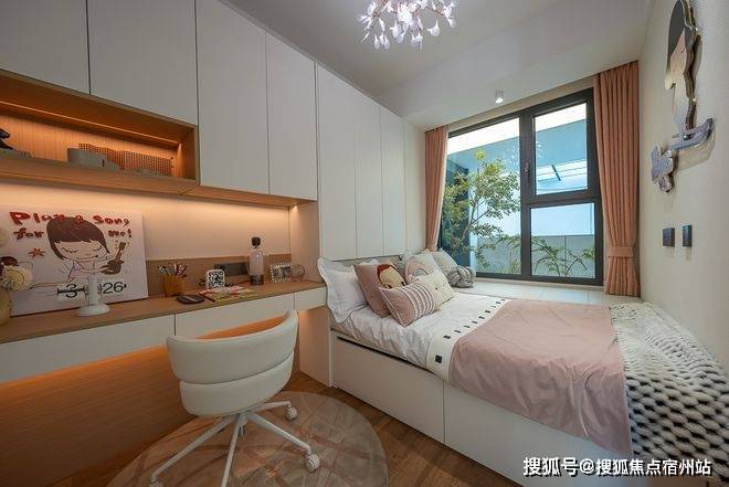 所以虽然是约89㎡的紧凑型3房,但这个户型还是有空间做了 一个1.5卫的设计 ,保证了主人的私密空间,也避免了早高峰用厕的尴尬。 样板房实景照片如下: