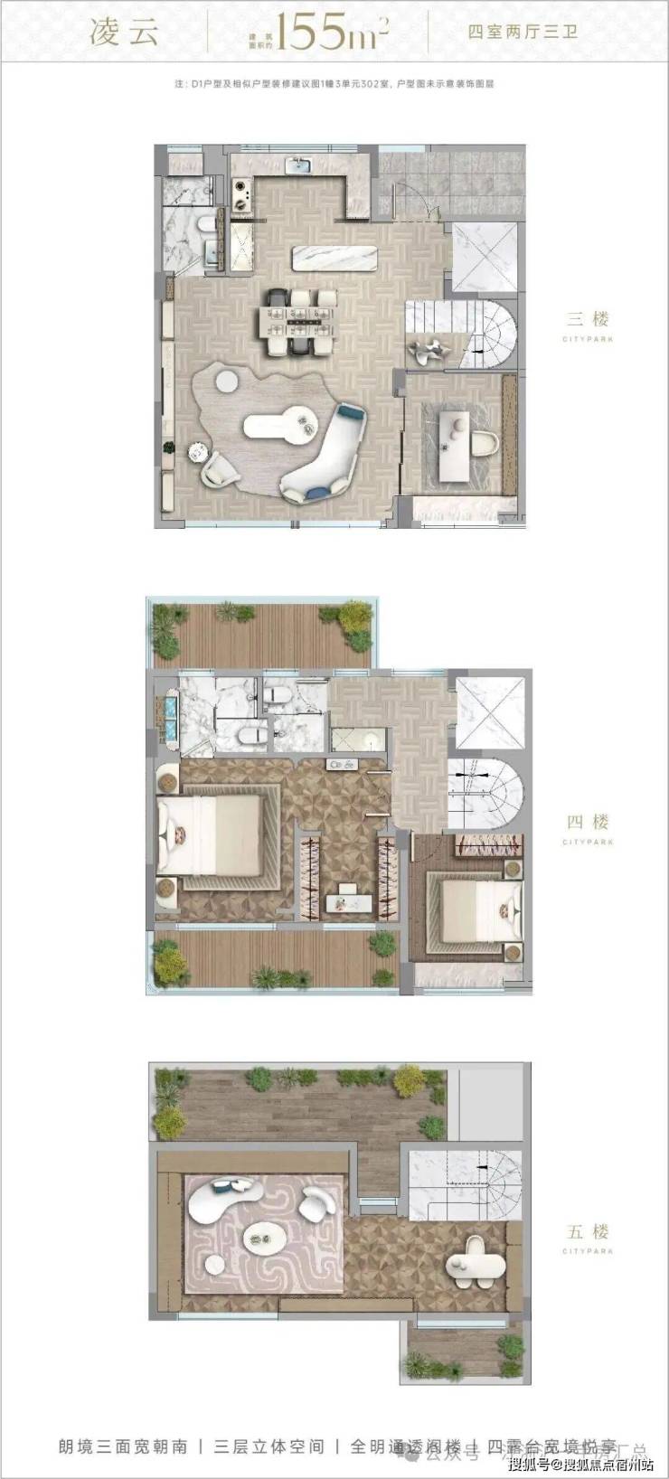 建面约125㎡云曜:奢尺四开间,全面迭新生活想象力