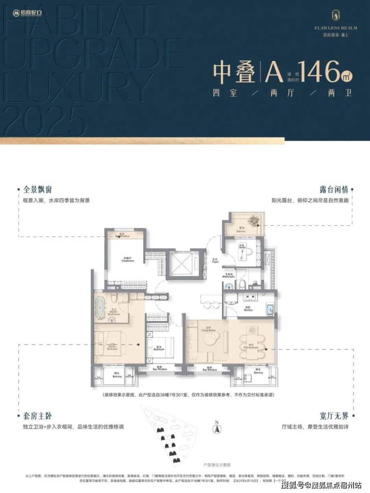 此外, 项目还推出了建面约146-152㎡滨水叠加,同样进行了空间革新 , 户型图如下↓