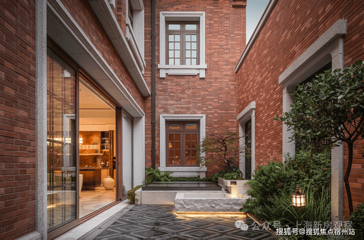 同时,建筑师还利用车行主入口的空间,结合水景、景墙和绿化打造出别具风格的开放式景观节点,并在风貌保护区的巷弄内设置 端头对景,宅间花园 等。