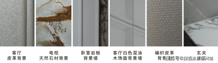 精装更是大手笔:丰富的背景墙,天然石材的电视背景墙。各种皮革面、木饰面的客厅、餐厅背景墙,让空间质感更高,更层次感丰富。